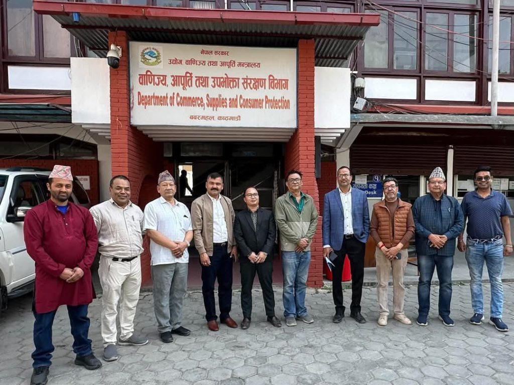 आज नेपाल निर्माण सामग्री व्यापार संघ काठमाडौँको पहलमा वाणिज्य तथा आपूर्ति विभागका प्रमुखलाई ज्ञापनपत्र बुझाइएको छ। व्यापारीहरूलाई भइरहेको समस्याहरू तथा बजारमा MRP राख्नुपर्ने विषयमा संघका अध्यक्ष अचुतम कटवाल संरक्षक सुरजराम वैद्य सहितका प्रतिनिधिहरू, हकहित संरक्षणका माधव तिमिल्सिना, र सचेतना नागरिक संस्था नेपालका अध्यक्ष दिपु उप्रेती उपस्थित थिए। संघले व्यापारमैत्री नीति अवलम्बन गर्दै अनुगमन प्रक्रियामा लचकता अपनाउन सरकारसँग माग गरेको छ।