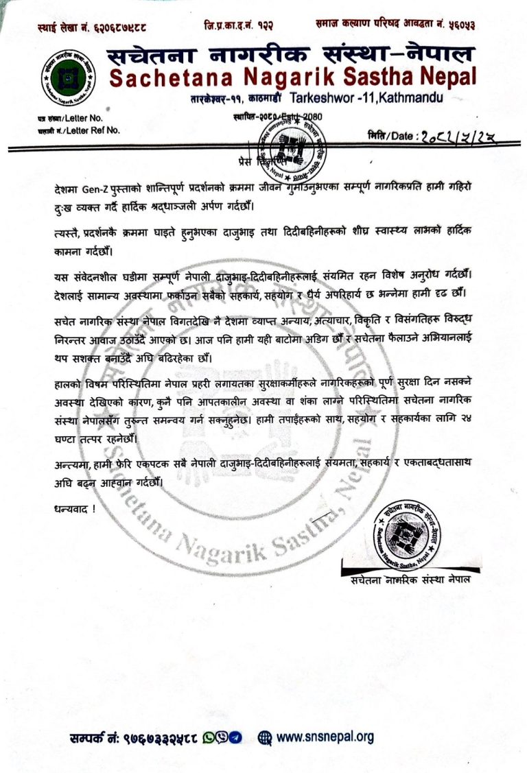 📌 समाचार स्रोत: सचेतना नागरिक संस्था नेपाल